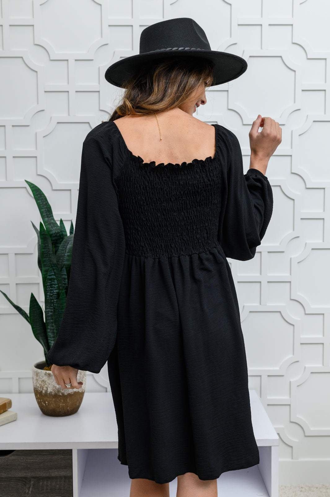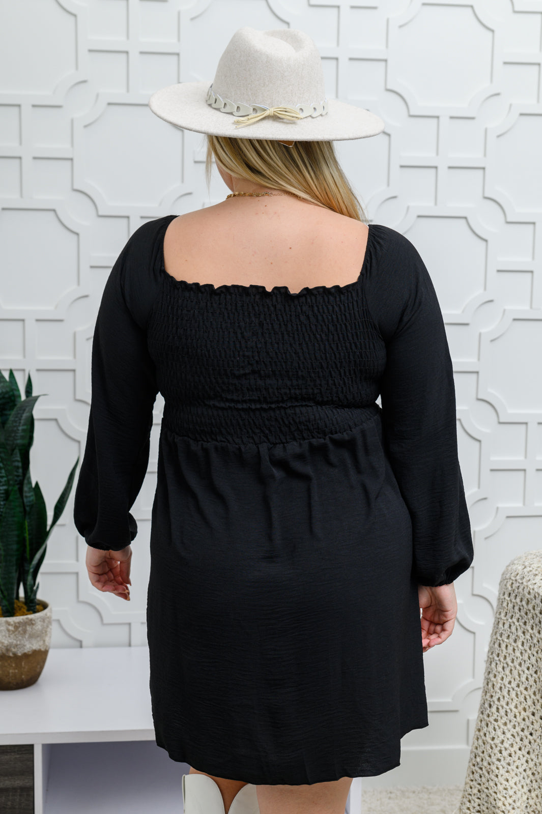 There's something about a little black dress that we just can't get enough of! The Love Like This Long Sleeve Dress In Black features a lightweight, breathable fabric, that shapes a square neckline dropping into a fully smocked bodice with long balloon sleeves and elastic cuffs. A playful mini length skirt starts just below the bust, perfect with a flowy silhouette.