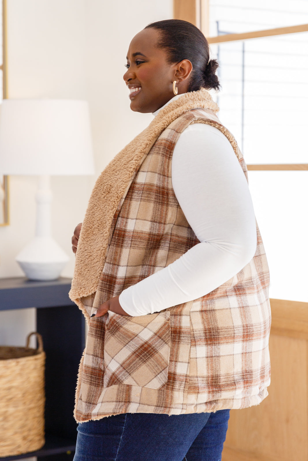 A crisp autumn morning calls for the Snug And Stylish Plaid Fur Lined Wide Collar Vest! This darling vest will get lots of use this season and will pair well over dresses, blouses, turtlenecks and more! Featuring a drapey open front with two front patch pockets. Decorated in an adorable plaid print and lined in a faux fur making this vest chic and on trend!